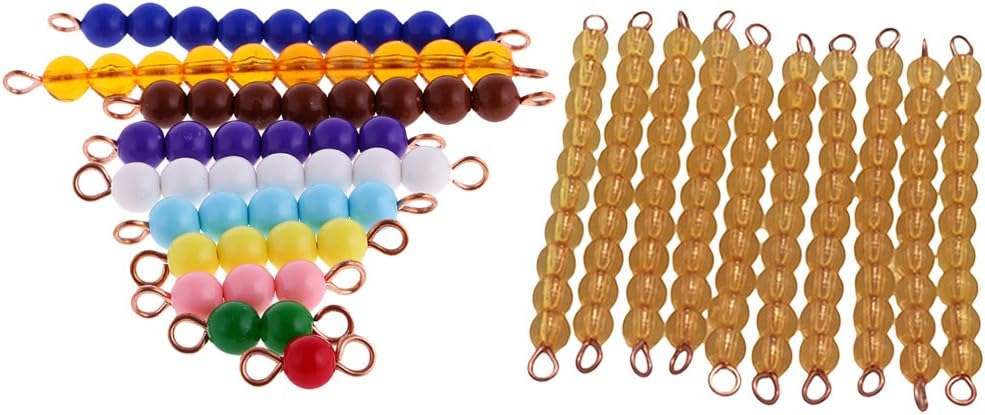 MagiDeal 2 Sets Perles Jouet Educatif Montessori ( Set 10pcs Fils de 10 Perles Jaune + 10 Fils de 1-10 Perles Nombres Colorés ) Matériel Mathématiques Jouets Educatifs Enfant