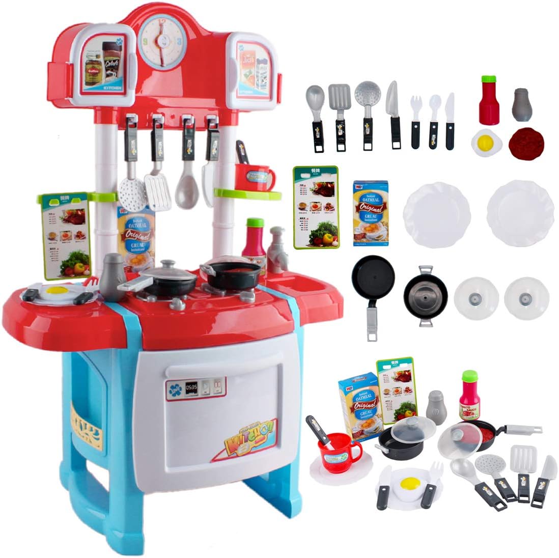 deAO Jeu de rôles Ma Cuisine de Chef avec des Fonctions de lumières et Sons, Eau et des Accessoires Inclus Jouet pour Garçons et Filles (Rouge)