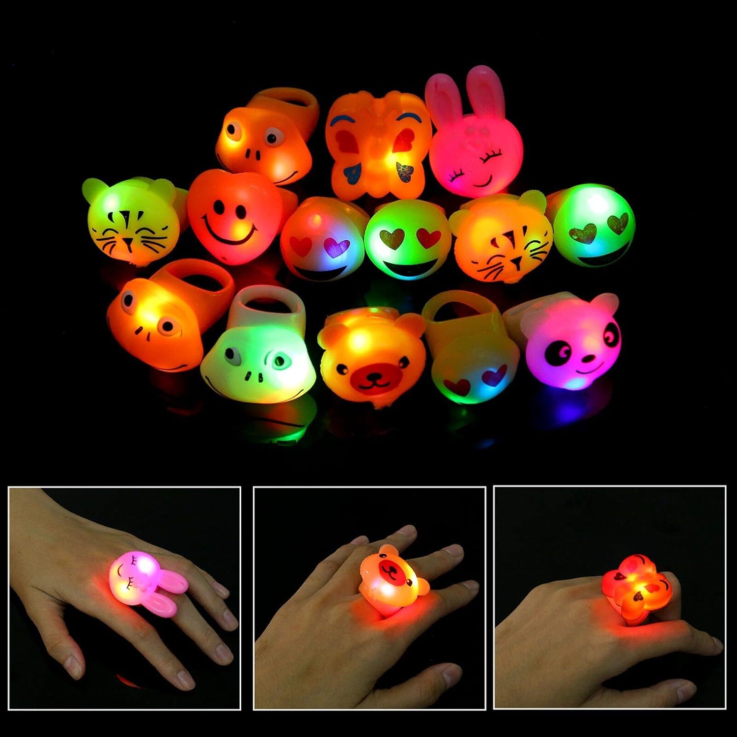 Ce Que Vous Obtenez - Paquet de 14 Clignotant Fête Jouet Bagues (10pcs d'animaux + 4pcs d'expression).